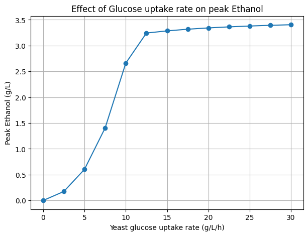 In replicating this work, we reconstructed the dFBA framework to simulate glucose and xylose consumption dynamics and ethanol production under varying environmental and kinetic constraints. Our reproduced simulations successfully captured the characteristic diauxic behavior observed in the original study, with yeast preferentially consuming glucose before shifts in metabolic activity altered overall substrate partitioning. Through systematic parameter exploration, we examined the sensitivity of ethanol accumulation and identified that elevated ethanol concentrations arise from high glucose uptake rates combined with oxygen limitation and insufficient dilution or downstream metabolic consumption. Furthermore, diauxic timing was found to be strongly controlled by substrate depletion thresholds and oxygen transfer capacity, confirming the system’s sensitivity to environmental and transport parameters.